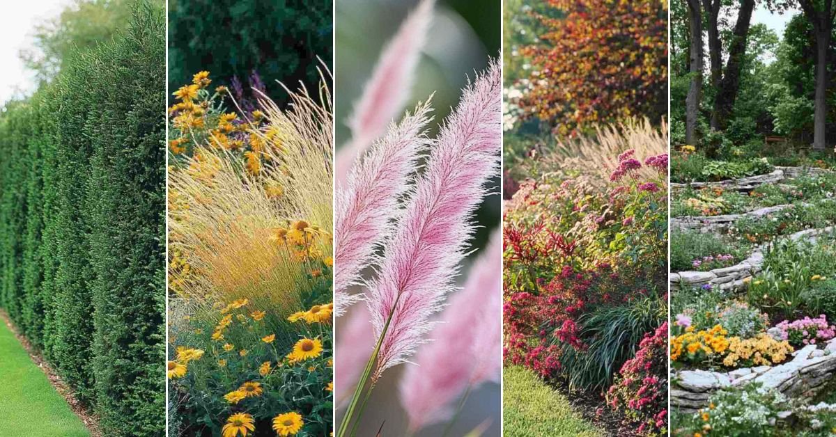 - Capim-dos-pampas (Cortaderia selloana) – Graminácea decorativa que cria movimento e suaviza a força do vento.